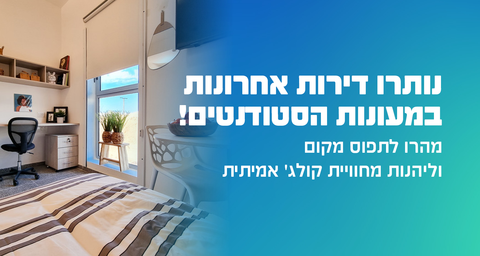 - דירות סטודיו ליחיד ולזוג ללא שותפים החל מ-2,390 ש"ח